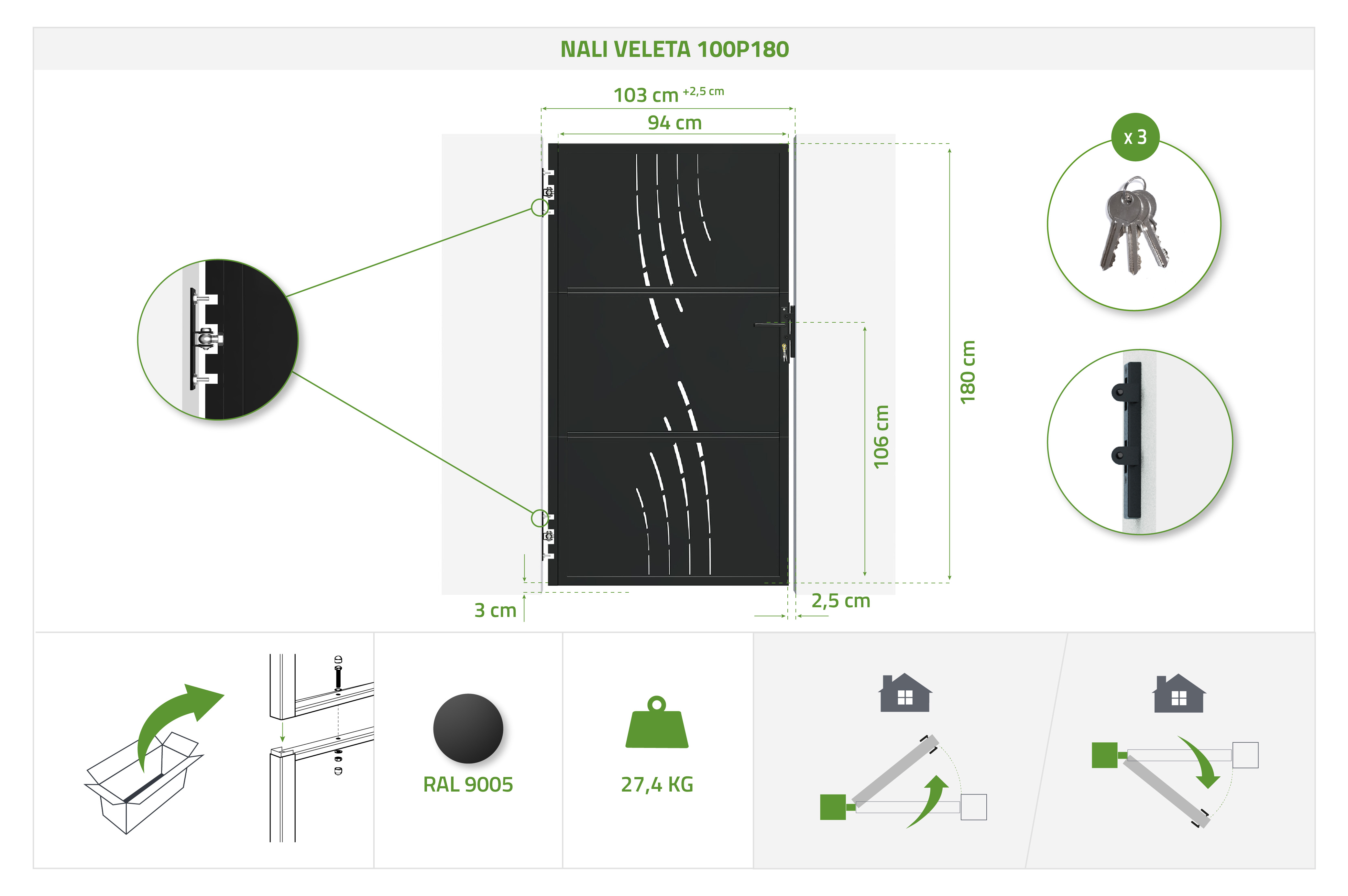 Matt fekete acél kapu 1m NALI VELETA M.180cm