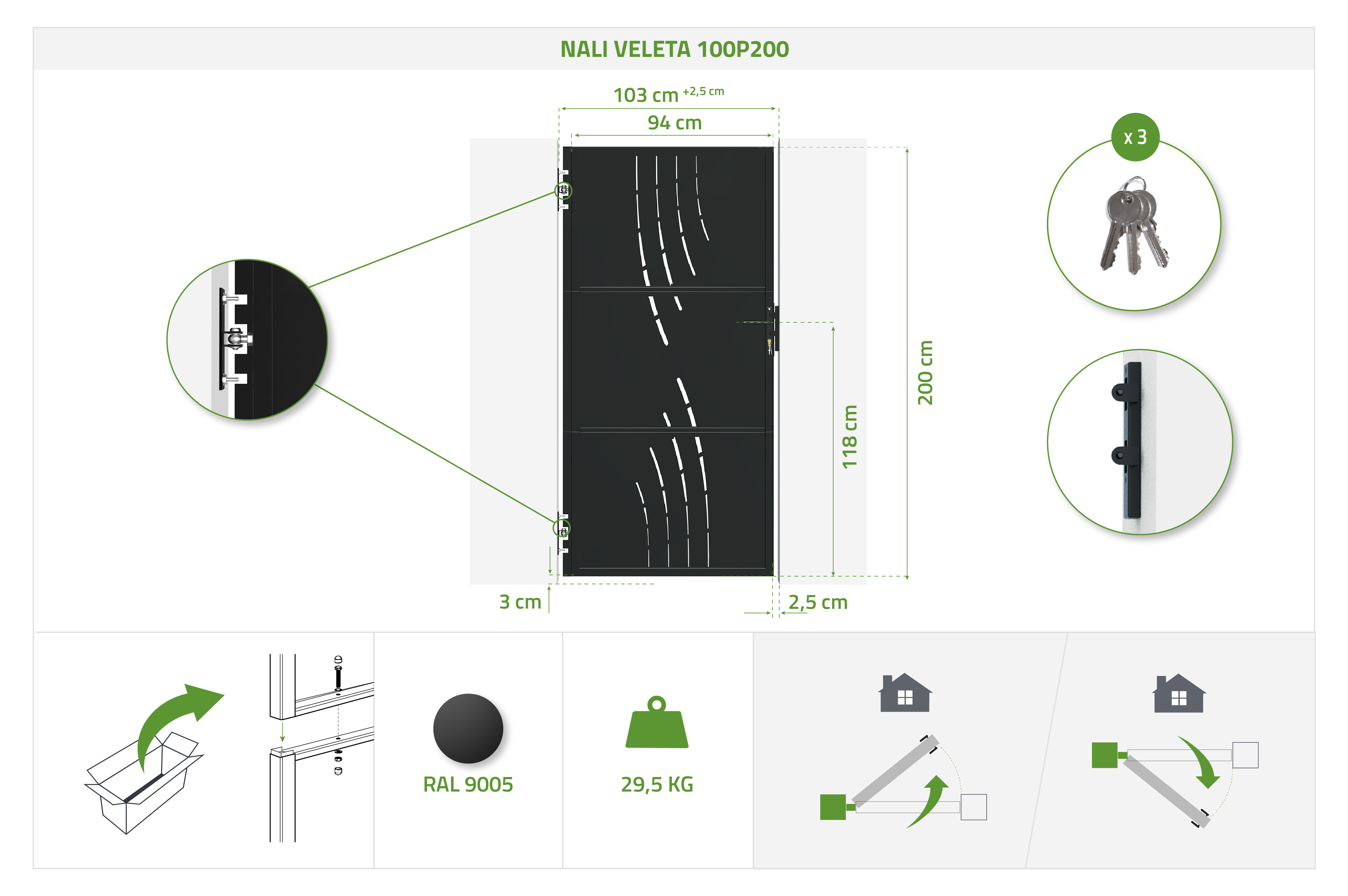 Matt fekete acél kapu 1m NALI VELETA Ma. 200cm